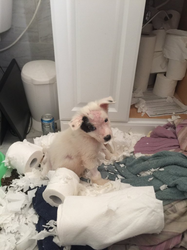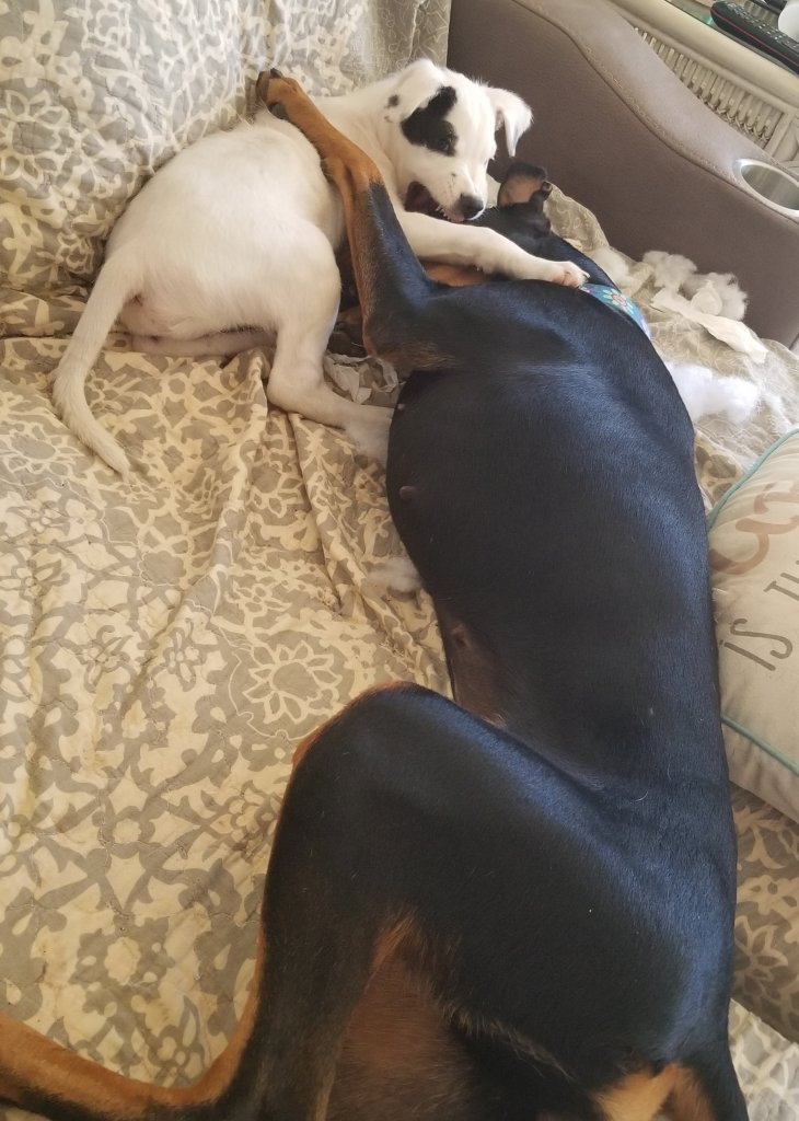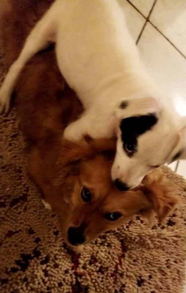 Oh Baxter! Jane is really very patient! β₯οΈBaxter with foster sister Ziesa. Baxter with foster brother Dobby. Baxter with friend Sansa, “We killed a pillow together! Let’s eat each other’s faces! πππ”Baxter loves squishy beds, nylabones, paper, and shoes. Thankfully he has never done any damage to the shoes, but he is a bit of a kleptomaniac about them. All paper (obviously) must be destroyed and shaped into new squishy bed. π€¦ββοΈ
