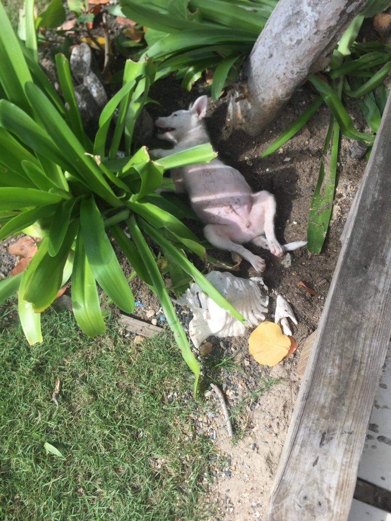 I turned around and couldn’t find them, “phew!” I thought, they went home……..NOPE. Just further into the damn road. So, stopped car in traffic, then stopped traffic and chased them off the road itself and there was the tiny puppy….right in front of me.