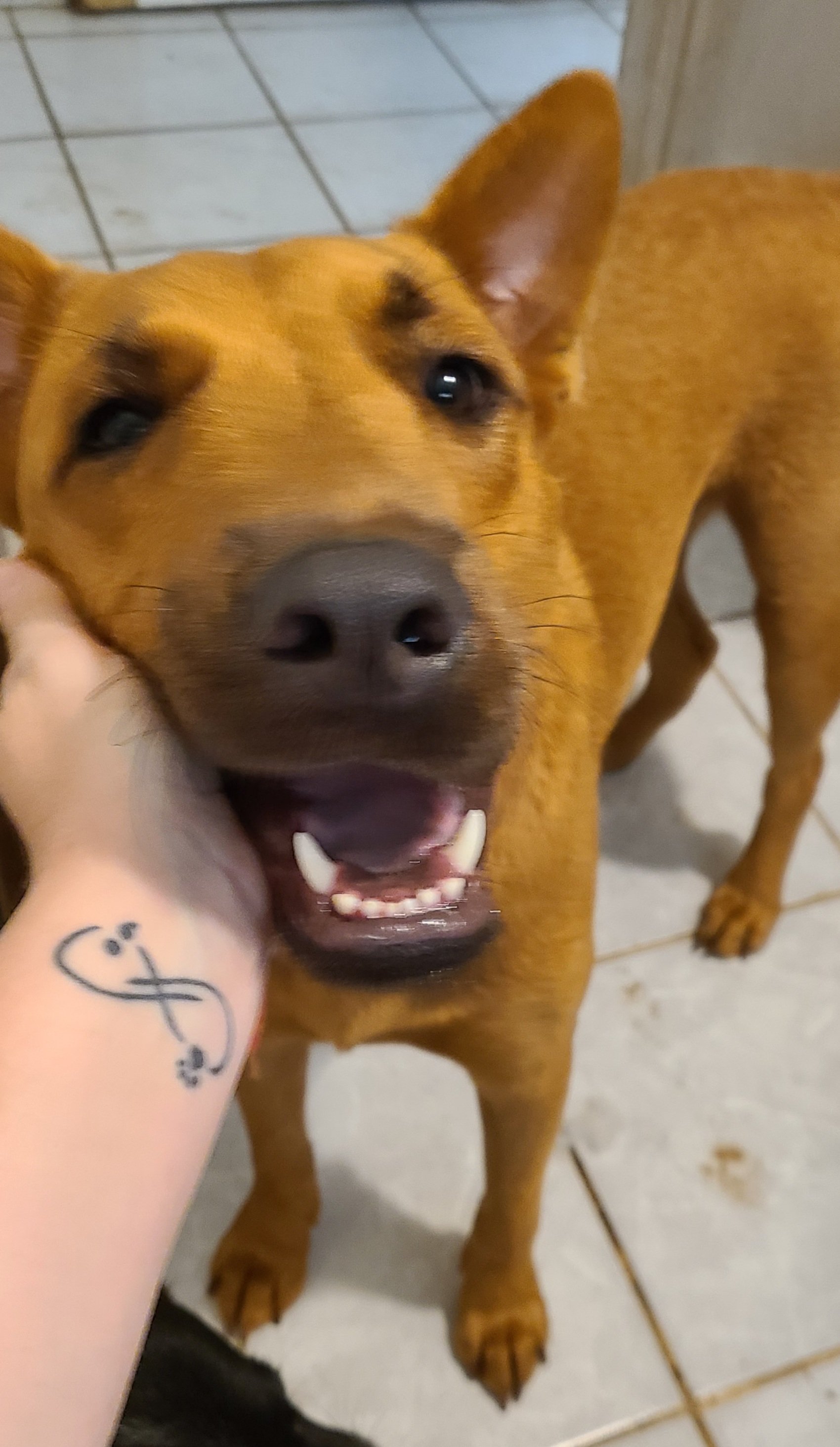 Stormii (the NOT-MY-DOG mama dog) is feeling much better and is getting more and more affectionate every day, to the point where she leaped into my arms on the couch and then joyfully swung her heavy, meaty head and clocked my right in my orbital socket with her closed mouth. Holy shit, I saw stars. They were sparkly.π₯π₯π₯