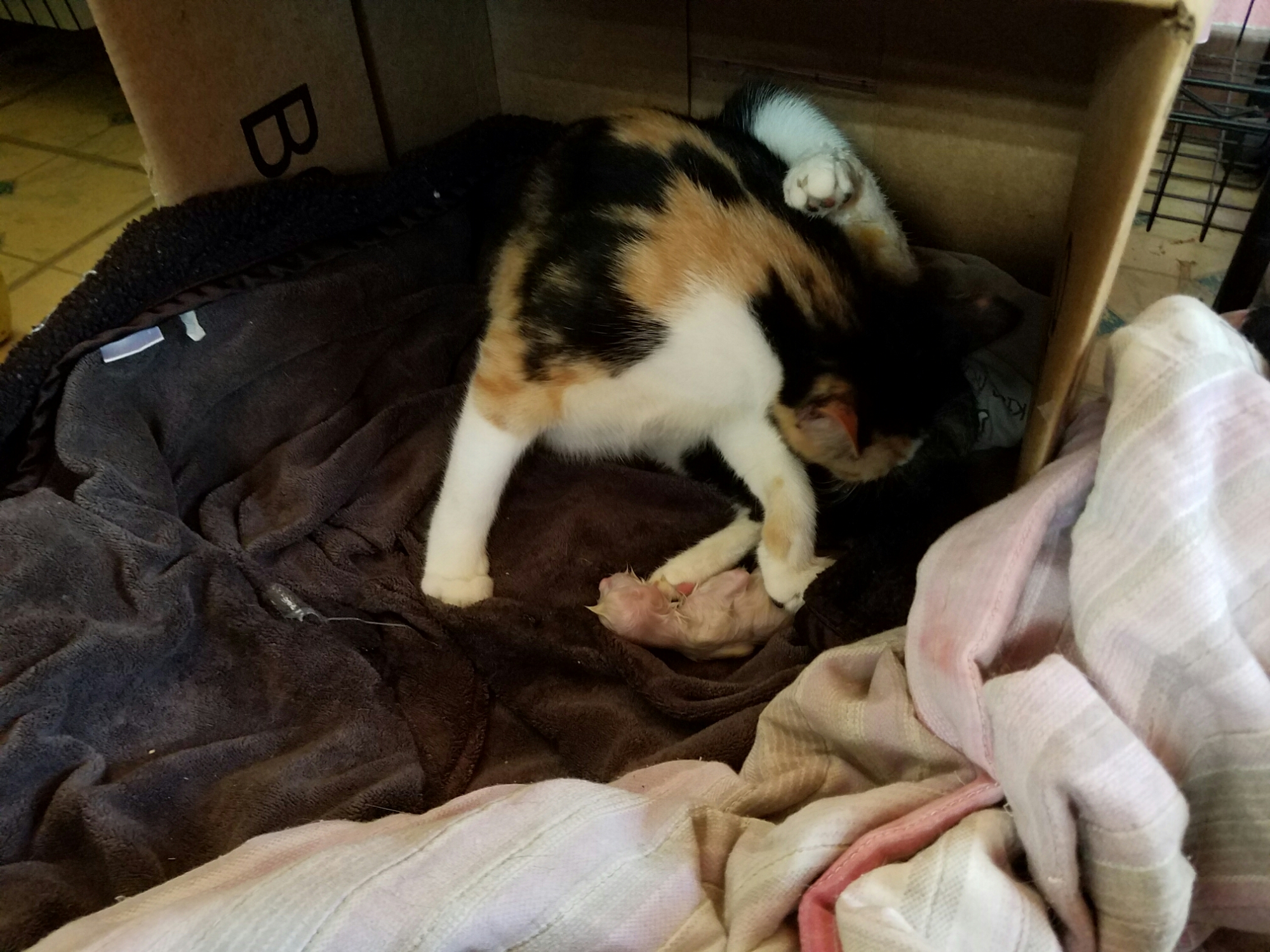 So…there is a longer story behind this but HELLO WORLD! Lucille is having her kittens today!