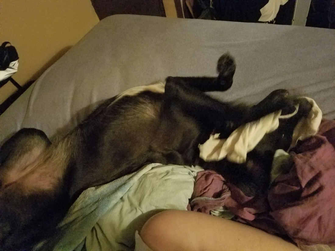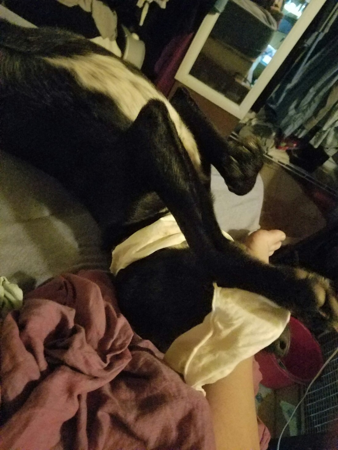 While my left foot is working towards frostbite (kidding, I know to remove the ice once the skin turns blackish purple! I’ve watched ice road truckers! 🙂 ), I am being entertained by a pretty little clown named Piper (aka “weird stinky” (don’t ask, we also have “biggest stinky”, “brindle stinky”, and “littlest stinky” who is no longer the littlest. smh)) as she fights with one of the recurring villains at FoodLady’s house known as Evil Knotted Rag!
