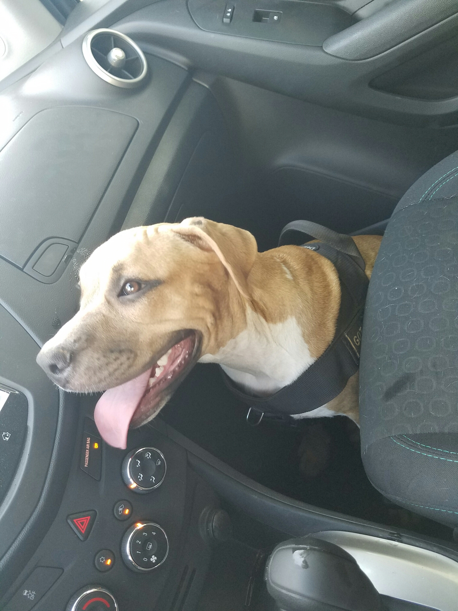 Dear Ziesa, this morning you were almost (so. damn. close.) interested in going to work with me. Alas, you were completely nekkid (no collar, no harness) so I left you outside while I zipped inside to grab leash & collar. In the minute it took me to return, you had changed your mind and grunt-stomped your stocky butt back into the house.