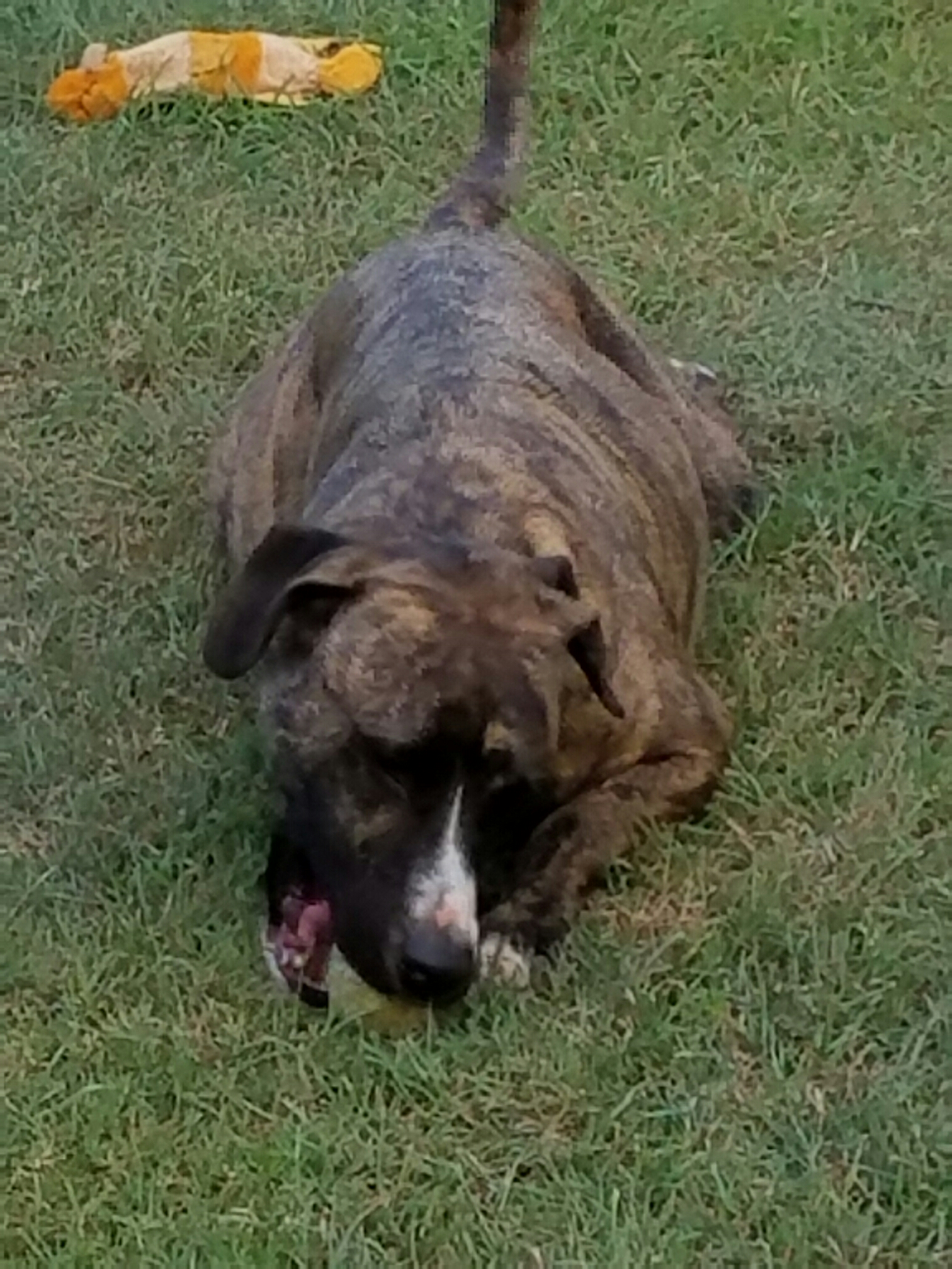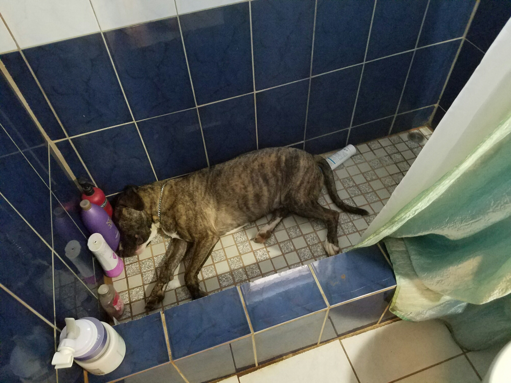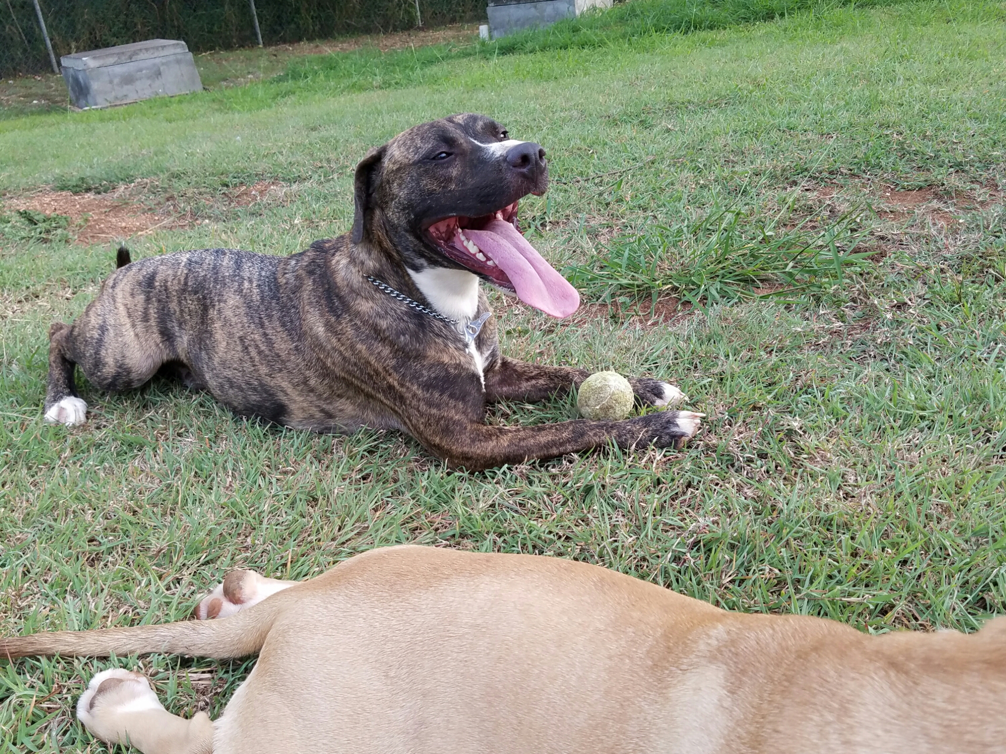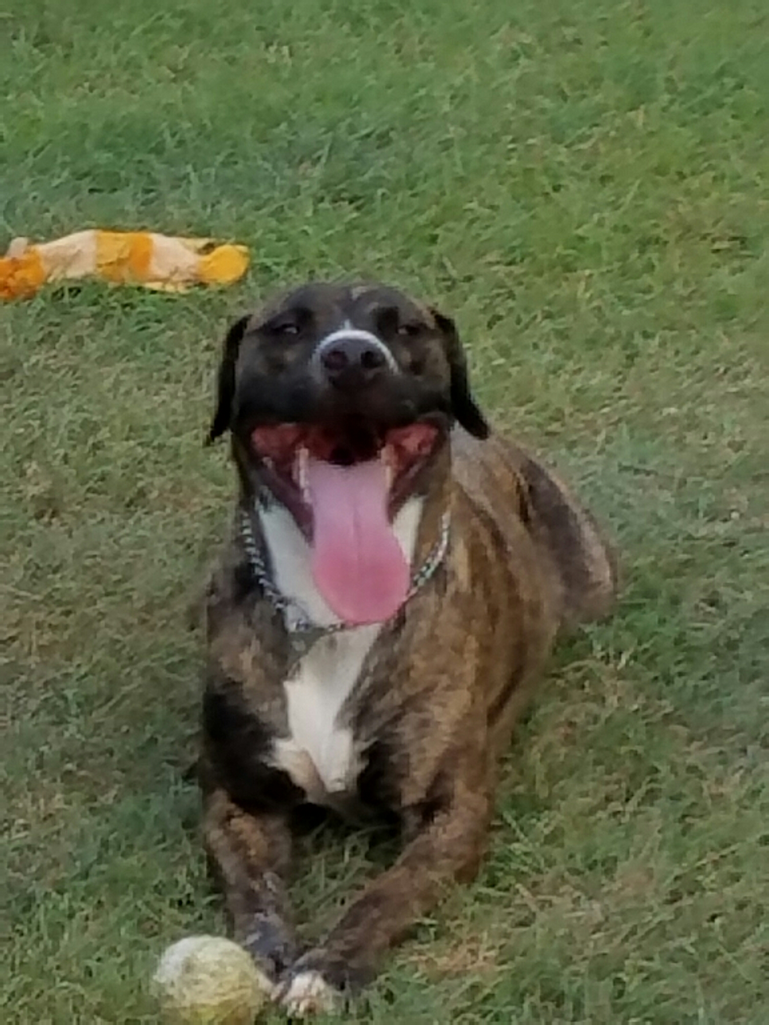Miss Ziesa is 85% American Staffordshire Terrier and 15% Boxer. How in the hell two incredibly high energy dog breeds created the slacktastick wünderpup that is a Ziesa I do not know, unless it’s like math where a negative times a negative equals a positive [-1 × -1 = 1]?