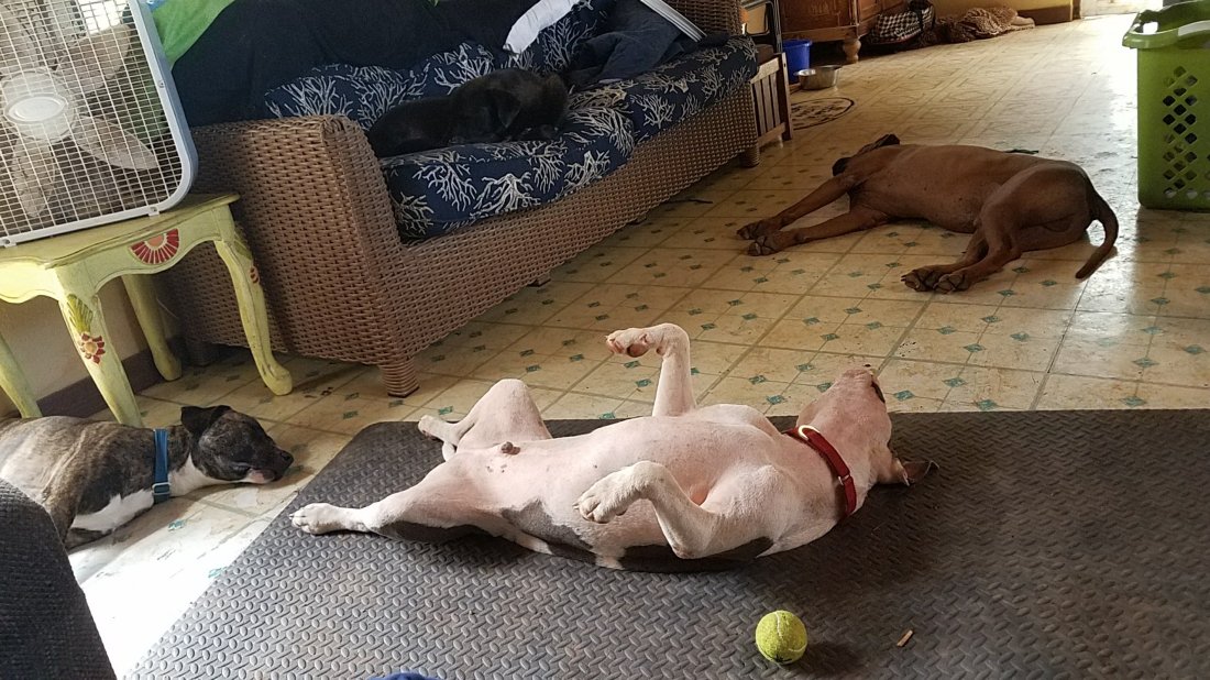 Humphrey, the largest of our idiots, is technically my husband’s dog because when he saw a picture of this dog he literally said, “I love him, his name is Humphrey and I shall love him forever.” and that is how Humphrey was named and adopted.