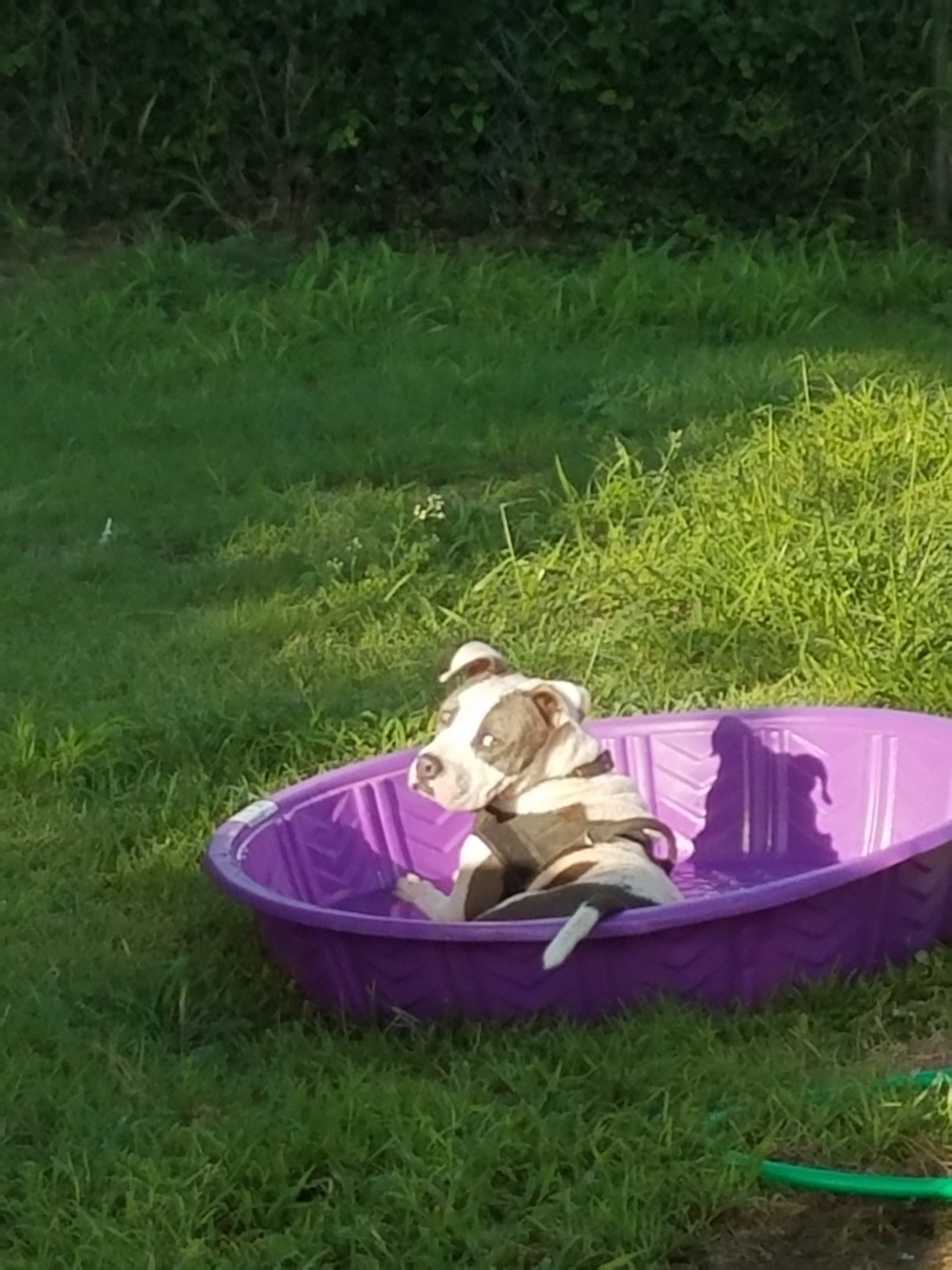 Ziesa – female, neutered, 1 year, fawn, she is a mix of boxer and terrier. This poor princess was adopted from the animal shelter and is currently the least healthy dog I have, her hip dysplasia and arthritis are very bad and the medications and supplements are insanely expensive. We are just giving her the best quality of life we can for as long as we can and then we will have to let her go. Tragically, I adopted her to attempt to train her as a replacement service dog for Herbert; needless to say her health is just not up for it.
